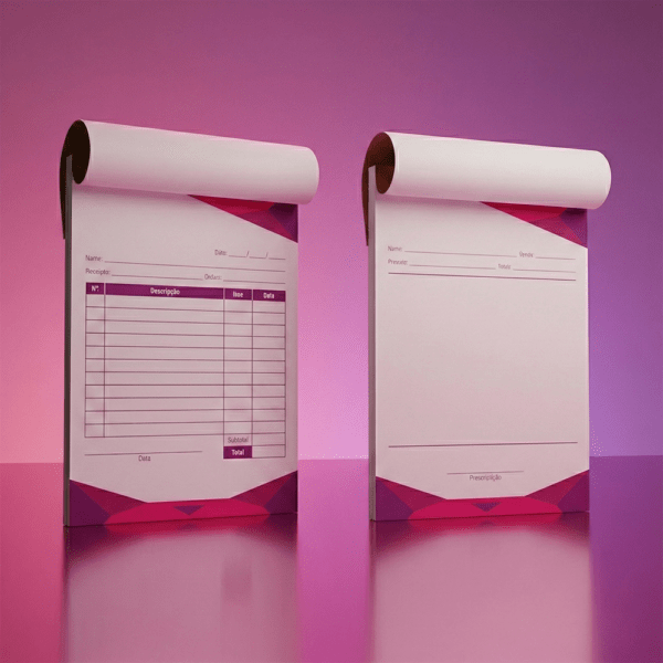 Blocos personalizados de 1 via para recibo, receituário, comanda, talões, anotações, timbrados…, reforce sua marca com qualidade de impressão que transmite credibilidade e impacto.